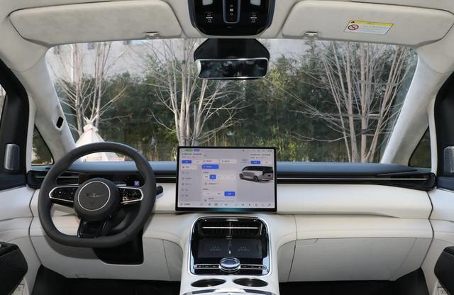 内饰采用了贯穿式大联屏,搭载新一代SA8775P芯片、还搭载了拥有Momenta R6飞轮大模型加持的逍遥智行高阶智驾。车内还配备了50英寸全景AR-HUD抬头显示、后排21英寸4K娱乐屏,车载冰箱、零重力座椅等。